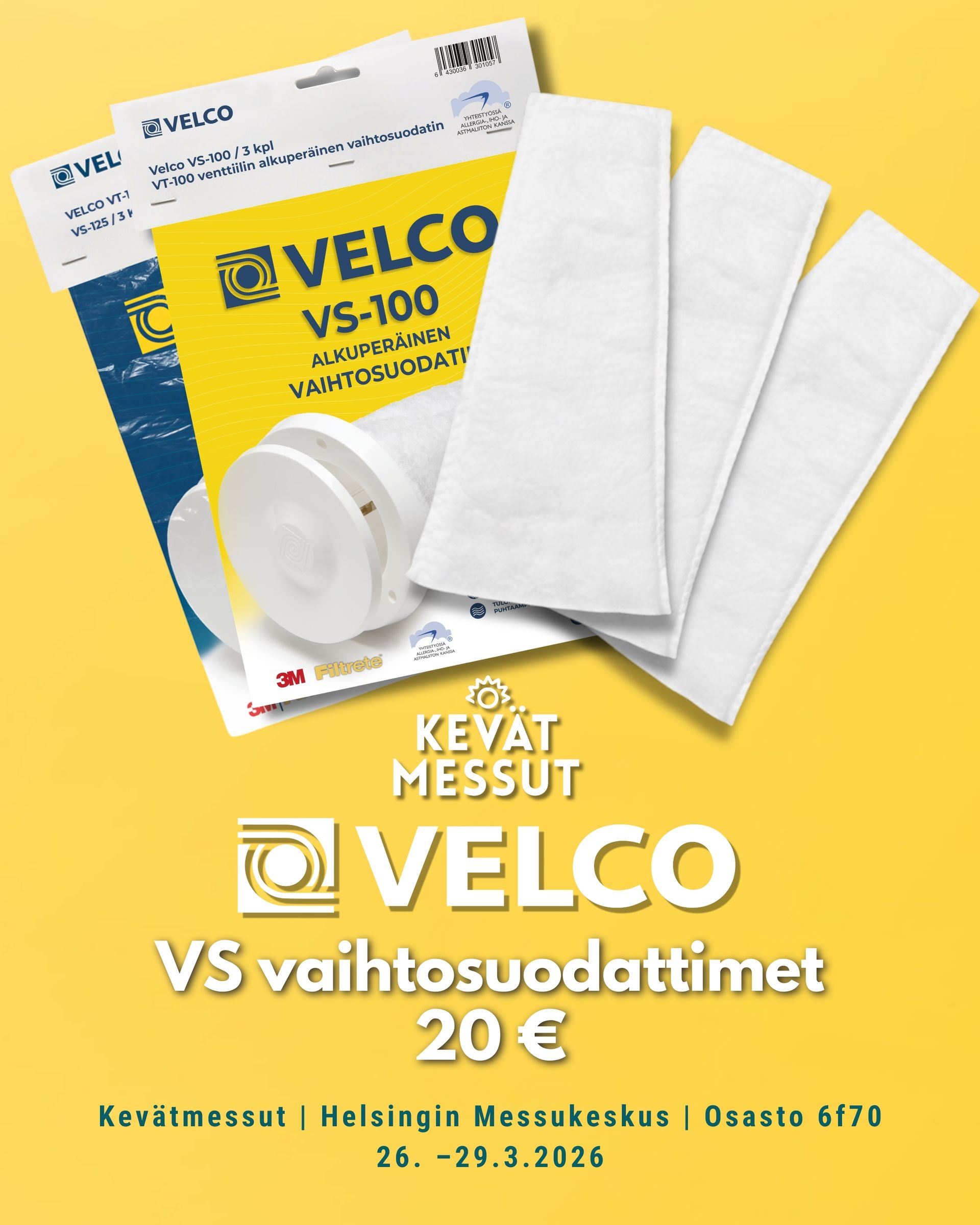 Messuosastollamme voit myös hankkia kevään vaihtosuodattimet, jotka pitävät ilman puhtaana siitepölystä, katupölystä ja muista epäpuhtauksista. Tule juttelemaan asiantuntijoidemme kanssa ilmanvaihdosta ja löytämään kotiisi sopiva ratkaisu. Luvassa on myös huikeita messutarjouksia, jotka ovat voimassa vain tapahtuman aikana.