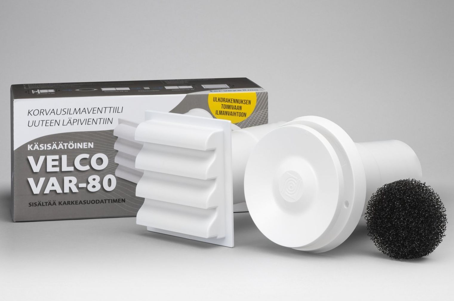 Velco-korvausilmaventtiileillä parannat helposti ilmanvaihtoa. Tutustu kattavaan tuotevalikoimaamme ja löydä juuri sinulle sopivin ratkaisu toimivan ilmanvaihdon toteuttamiseen. Valmiiksi pakatut tuotteet löydät jälleenmyyjiemme valikoimista – yksilölliset ratkaisut, kuten korvausilmaventtiilit haluamasi värisillä ulkoritilöillä, saat suoraan meiltä.