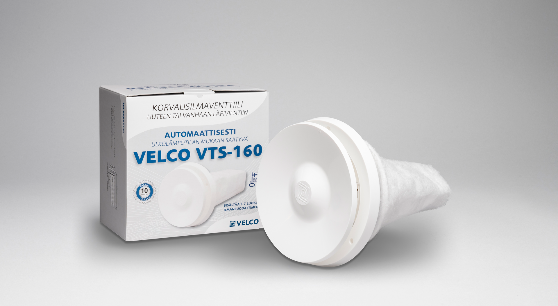 Velco VTS korvausilmaratkaisun sisältämä suodatin estää tehokkaasti epäpuhtauksien kulkeutumisen sisäilmaan. Patentoidusta 3M Filtrete™-materiaalista valmistetun suodattimen ainutlaatuinen teho perustuu sen kuitujen sähköiseen varaukseen, joka vetää tehokkaasti epäpuhtaudet puoleensa. VTT:n tutkimusten mukaan suodattaa siitepölyn sataprosenttisesti sekä torjuu merkittävän osan terveydelle haitallisista pienhiukkasista.